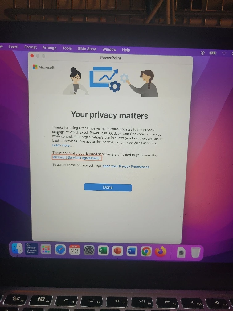 # Office 2016/2019/2021 for Mac presents "first run" dialogs to the user to market some of its new features.