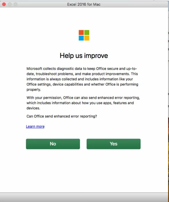 After everything runs and installs and I open office I get the following popup about enhance error reporting.