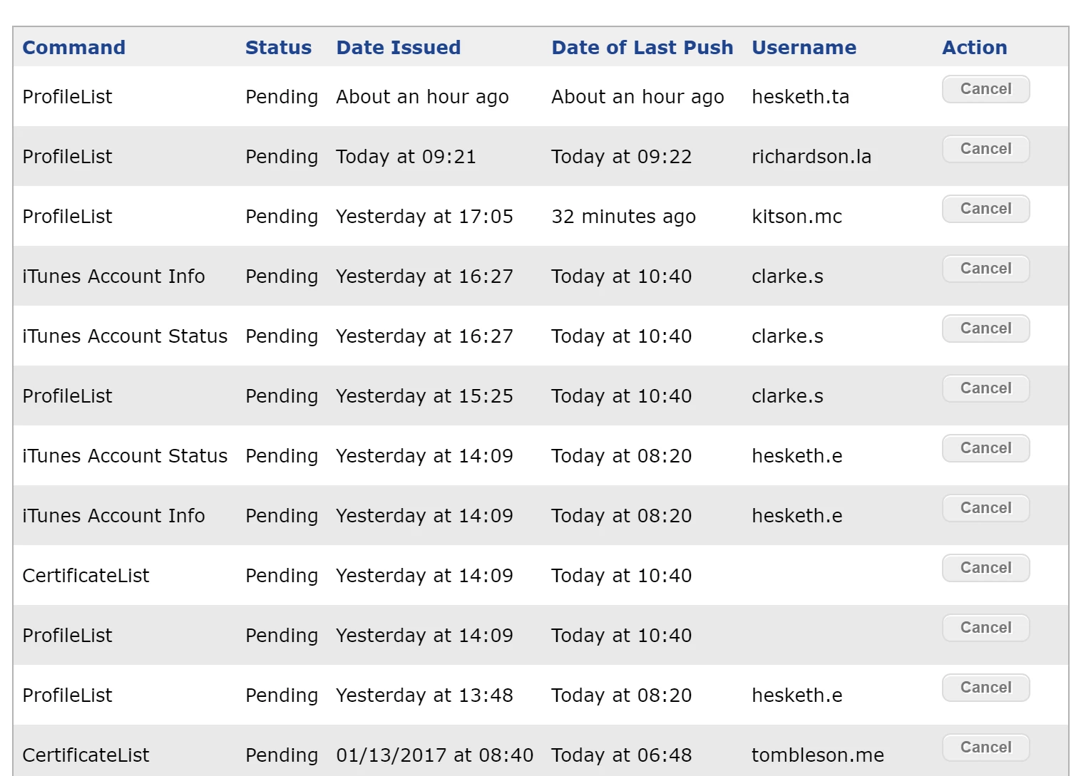 ProfileList Pending 01/26/2017 at 10:50 PM 01/19/2018 at 2:10 AM UserName Cancel
