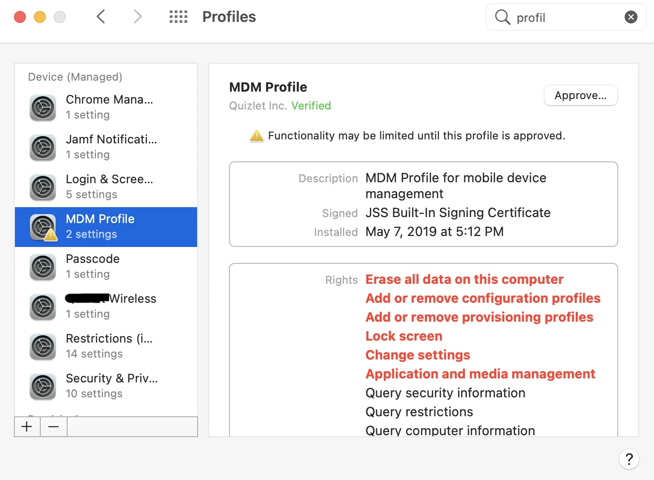 Pending Config Profiles