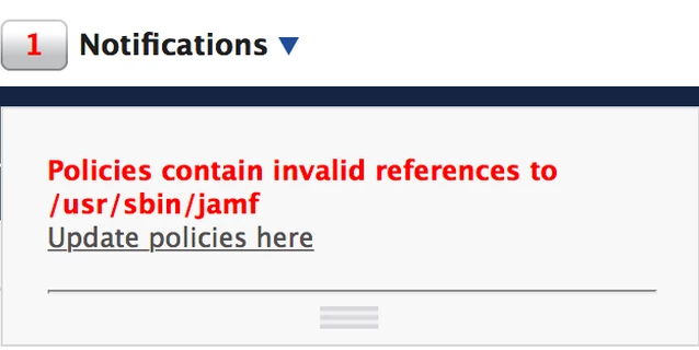 Please note: The workaround for D-009675 assumes that we've already taken care of any lingering scripts or extension attributes that reference /usr/sbin/jamf and, that even after fixing the path, we're still seeing the error message show in the UI.
