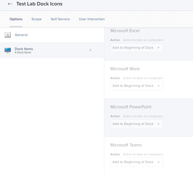 I'm successfully pushing the O365 suite and applying the icons to the dock with the installation of the software but for the labs, I need to add the software to the dock for all new users and this is throwing it out of wack.