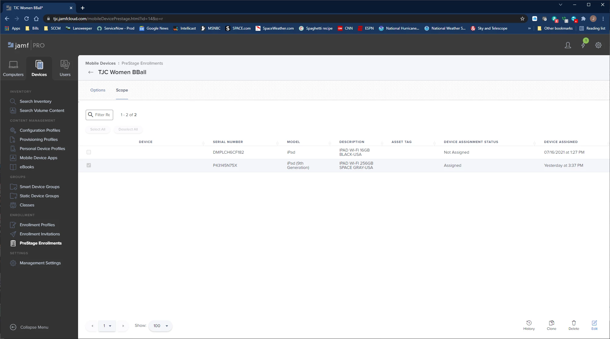 I am having trouble with being able to select an iPad in the Prestage Enrollment listing in Jamf Pro. When on the main devices screen I select prestage enrollment on the left then it shows the list of devices. I can see the ipad and it has a check mark in the box for the group I want to assign it to. Under the device column I can click on it. It is just blank. I can select other devices just fine. Does anyone have an idea what may be the issue here?