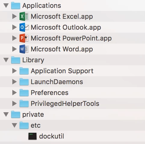/etc/dockutil --add /Applications/Microsoft Excel.app