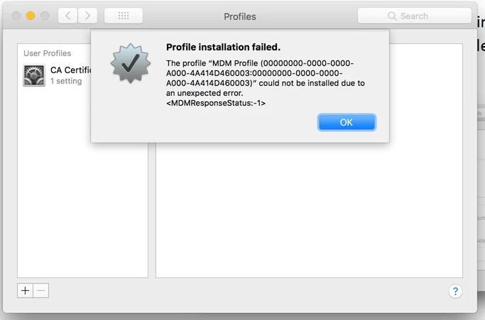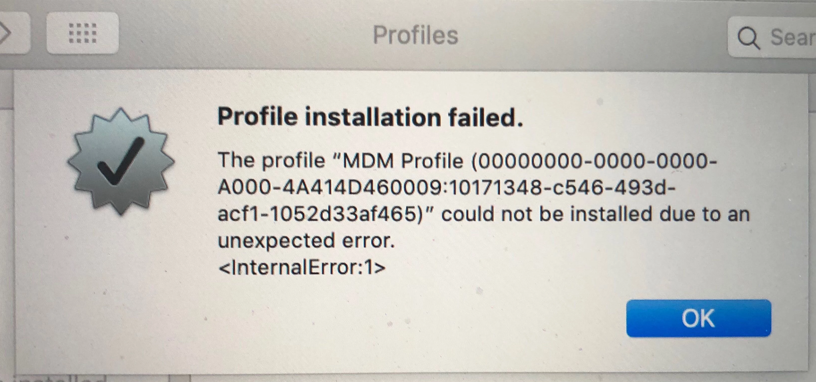 I'm getting a profile installation error from my A1822 iPad when trying to enrolling into our Jamf Pro account.