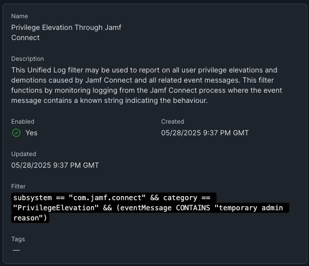 I am interested in how we can automate some reports or feed data into a SIEM like Splunk of Jamf Connect activity. The most important data point is when a user uses the privilege elevation feature. Does anyone have any experience or advise on this?