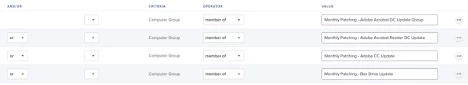 The policies are set for specific computers and users. The new policy I created that I was trying to deploy the script to run the triggers for the, is also specific computers and users. I initially created 2 groups for each application using what I found in the link below and to deploy to test groups, we just add the test groups to them and they drop off when they're updated. Just wanted to have one policy, so we don't have to disable the policy have the apps are deployed. Was hoping to keep them ongoing, but not recurring and then just stop/start the policy that runs the trigger script.