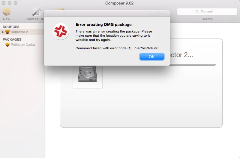 i'm trying to build reflector 2 .dmg but every time i build dmg this error message will show