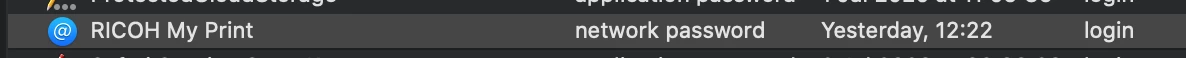 Security find-network-password -l "https://<myRICOHurl>" /Users/user_name/Library/Keychains/login.keychain