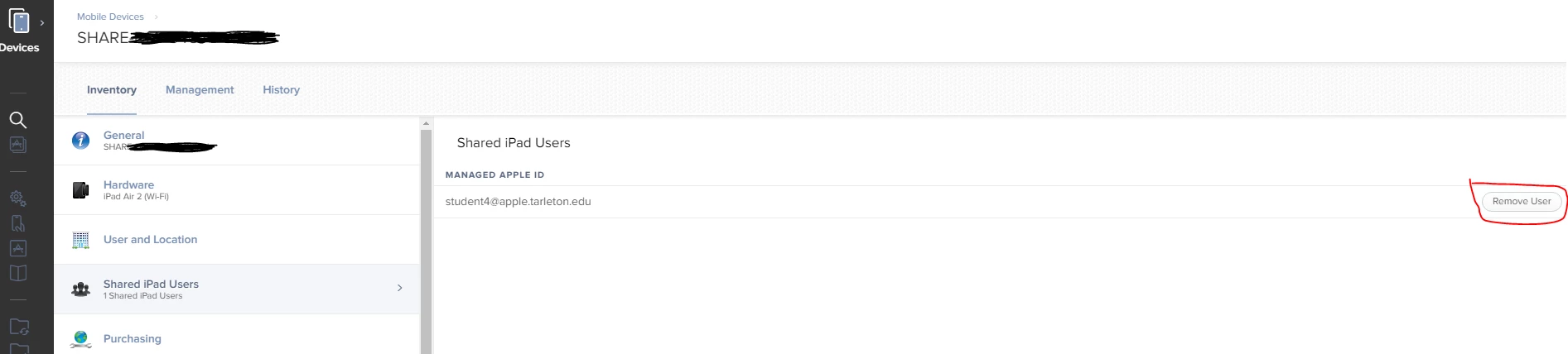 Can anyone tell me what I need to do in order to remove a user from a Shared iPad? A staff member has left recently and we need to remove their user data from the Shared iPads that belong to their department.