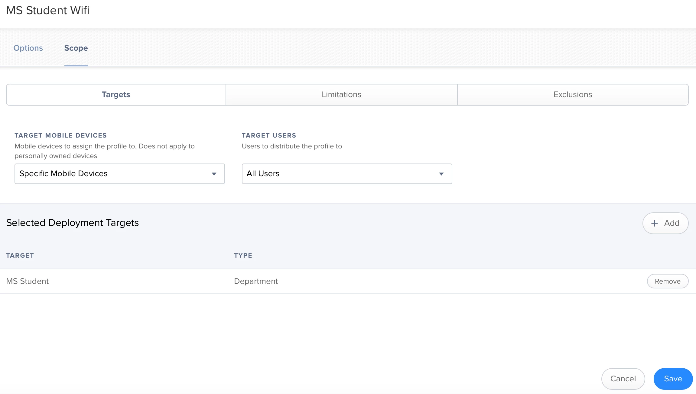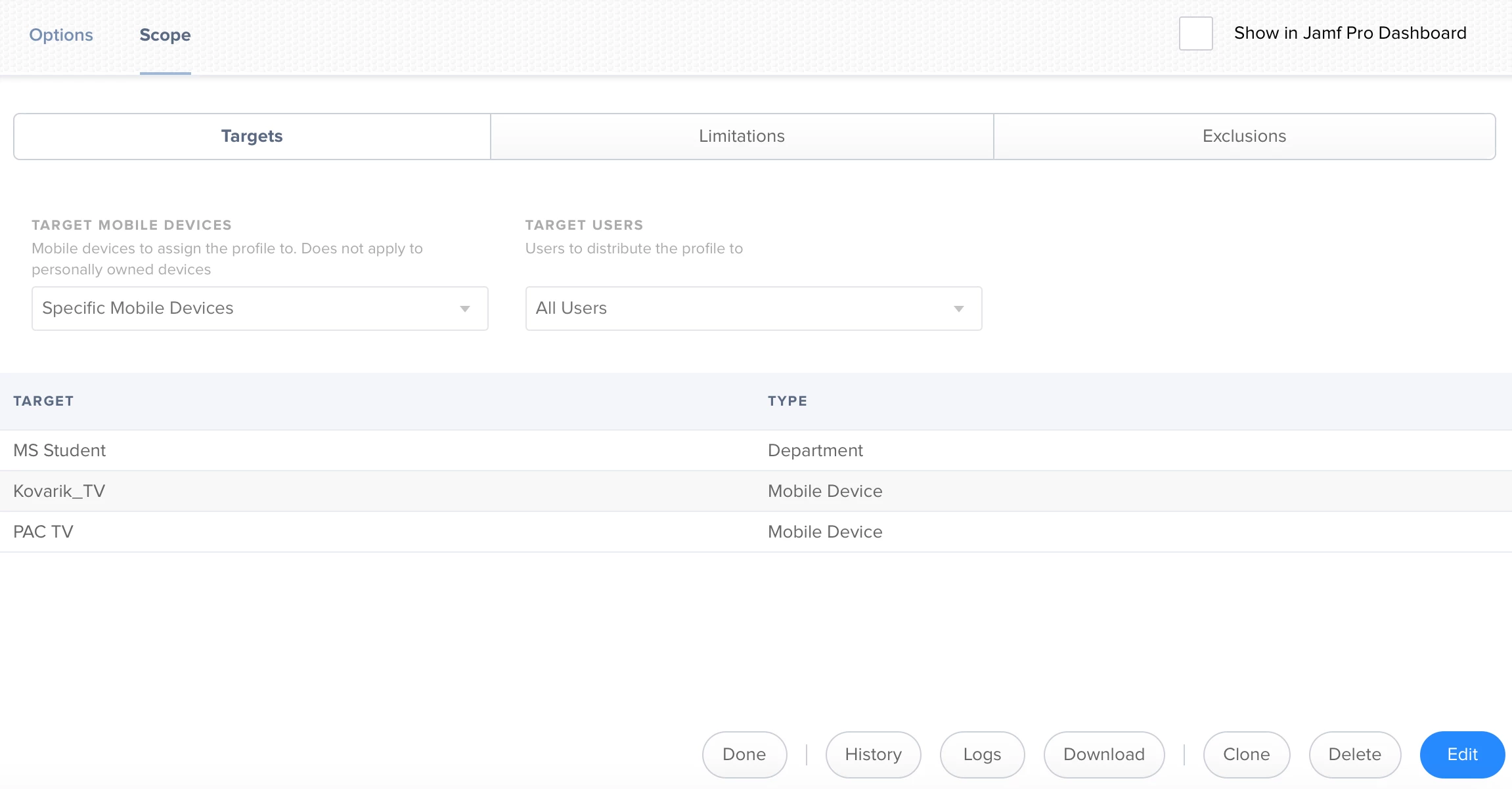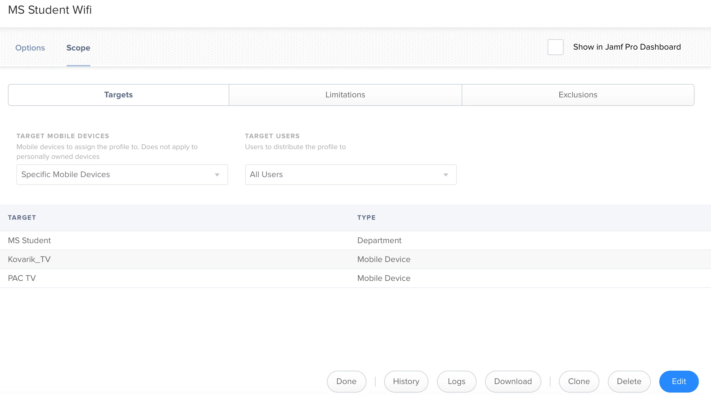 I have a couple wifi configuration profiles that were created new yesterday, not cloned at all. I scoped them to a department and saved it. Now my two apple tv's show under the scope list for reason (they aren't in that department and it still shouldn't show them in the list even if they were). I try to remove them from the scope. Edit>remove tv1> remove tv2> save> done. They still stay on the list. I've tried both "distribute to all", and "distribute to new" just to double check it wasn't being affected by that.