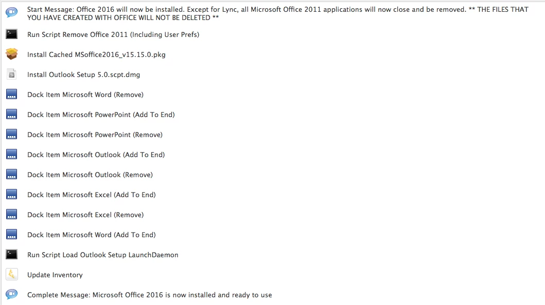 So we are planning on rolling out Office 2016 to our campus soon and we are going to be giving users the option to install 2016 alongside 2011 for the time being. Once they are happy with 2016, they can run the uninstaller we have in Self Service.