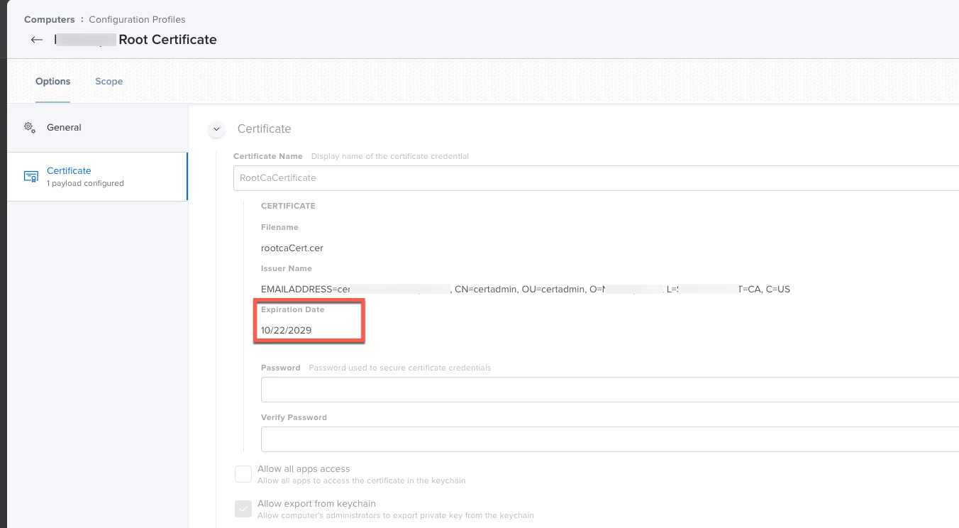 As far as the “Certificate” payload, that is a bit different. You would upload a .cer to JAMF to populate that payload. When JAMF deploys the configuration profile, it literally “copy pastes” the certificate it was given without changing any information including the expiration date. When its time to update a certificate deployed this way. Whoever manages that certificate needs to do the CSR stuff to get a new certificate and give it to you to upload in to JAMF. Once to upload the new certificate in to JAMF, you should see the option to redeploy the configuration profile which will update it on all Macs.