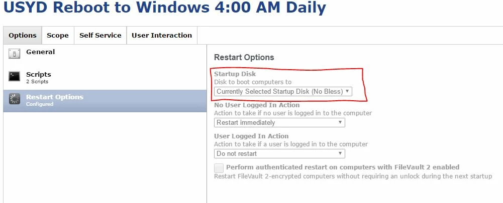 Restarting to Bootcamp Via Policy