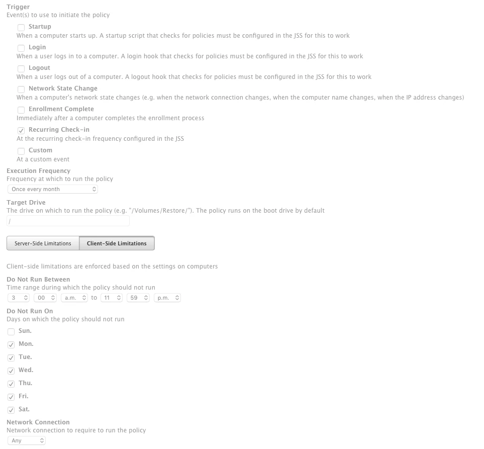 I noticed a lot of systems are still flagged as "Pending" according to the JSS log. Does this mean that the Policy will still try and run on Pending Macs, even though the scheduled time has lapsed? (I hope not as that means those Macs could possibly be rebooting during the day). Or does this mean that for whatever reason, those specific Macs never checked-in to get the Policy applied?