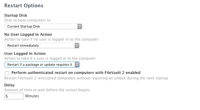 To avoid user intervention/notifications, are you suggesting that I remove the "Restart Options" Payload and just run a simple reboot script (or one-liner command via the "Files & Processes" Payload) after the SUS updates are applied?