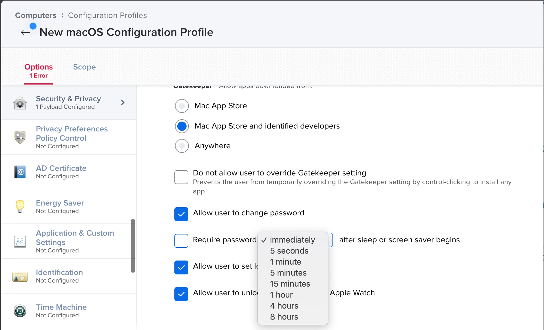 However, using the same script on $OTHER_MDM for Macs, screensaver starts after 5 minutes and does not prompt the log-in window, it runs until the display sleep (set for at 10 minutes).