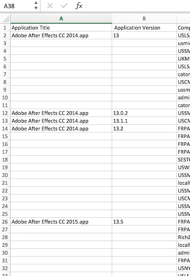 As it is easy to find all versions of installed apps from say Adobe or Microsoft, just no way to export the result.