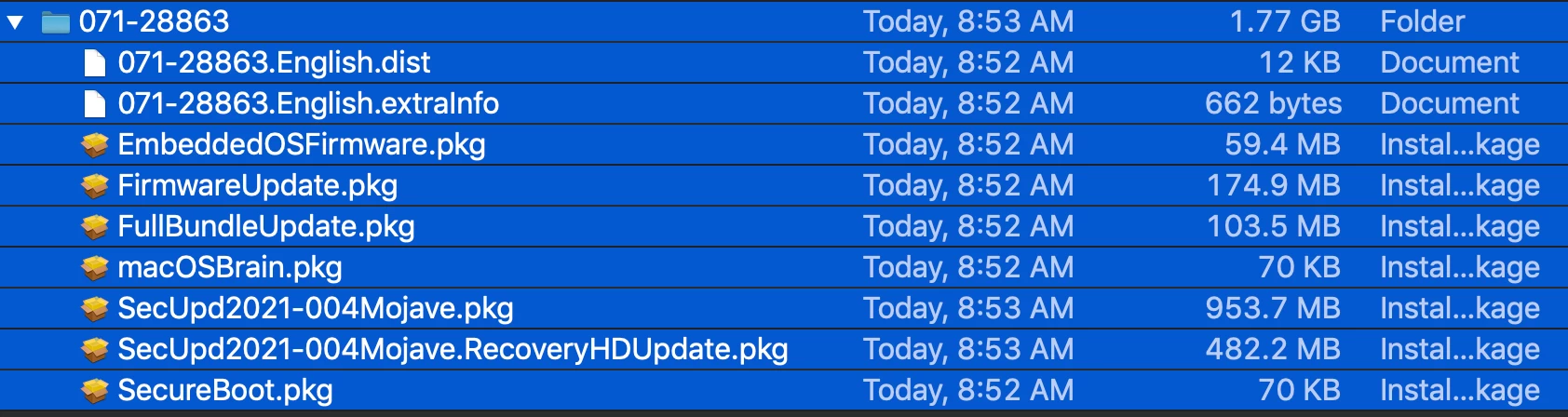 As you can see the correct pkg I was expecting to get is in there "SecUpd2021-004 Mojave.pkg", however, it is only 953.7MB's. And there are 6 other .pkg's with it. If I were to deploy just the 950MB "SecUpd2021-004 Mojave.pkg" would this work? If not, and I assume the the others are needed. How would I create a policy to deploy them all and is there a load order?