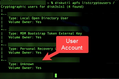 I double-checked the password and restarted the mac and again could not unlock the disk to boot into the OS and had to use the admin account. I checked the crypto users and found the type filled in as Unknown.