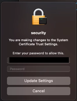 -k no longer works to trust a certificate in the keychain. If you use -k it will prompt the user to enter admin credentials to trust the certificate. This change happed with macOS Monterey. To trust a certificate it must be deployed with a configuration profile, you cannot build from source either.