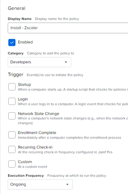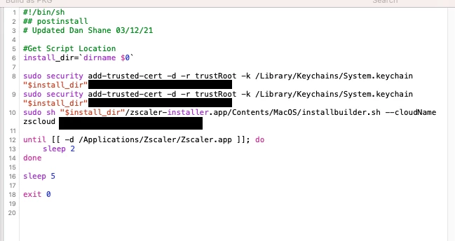 Policy is quit simple , only installing app from Self Service , but when I open Zscaler file in Composer , it was a script to modify keychain