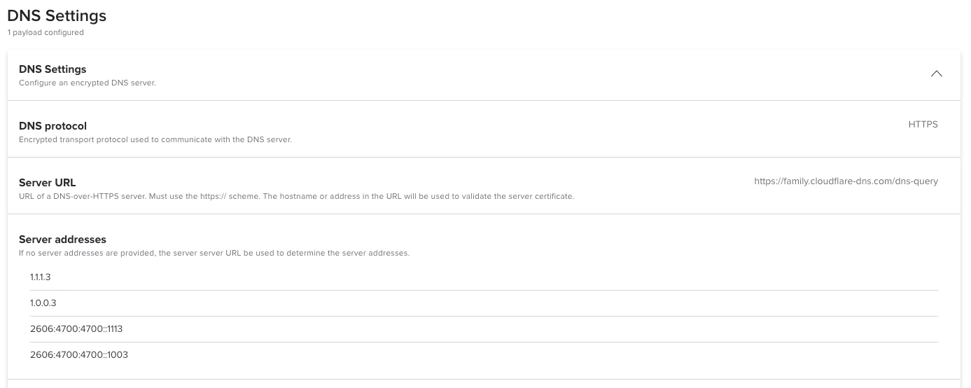 I am trying to set all my laptops DNS servers to Cloudflares. I set a test policy which does this: