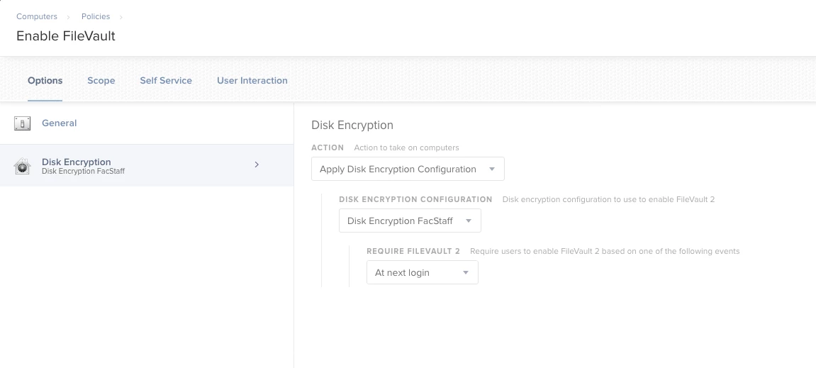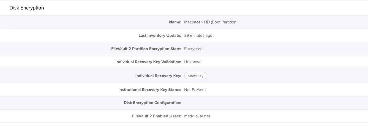 After this you need to create a policy to enable FileVault. Once this policy is applied, the key will be stored in the device record.