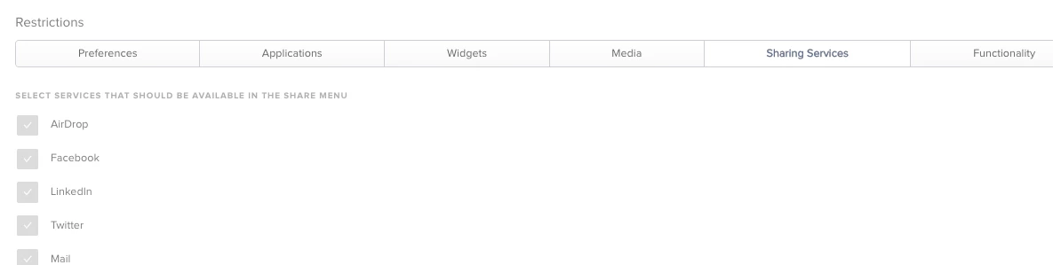Does anyone achieved to disable any sharing services payload through Configuration Profiles..?