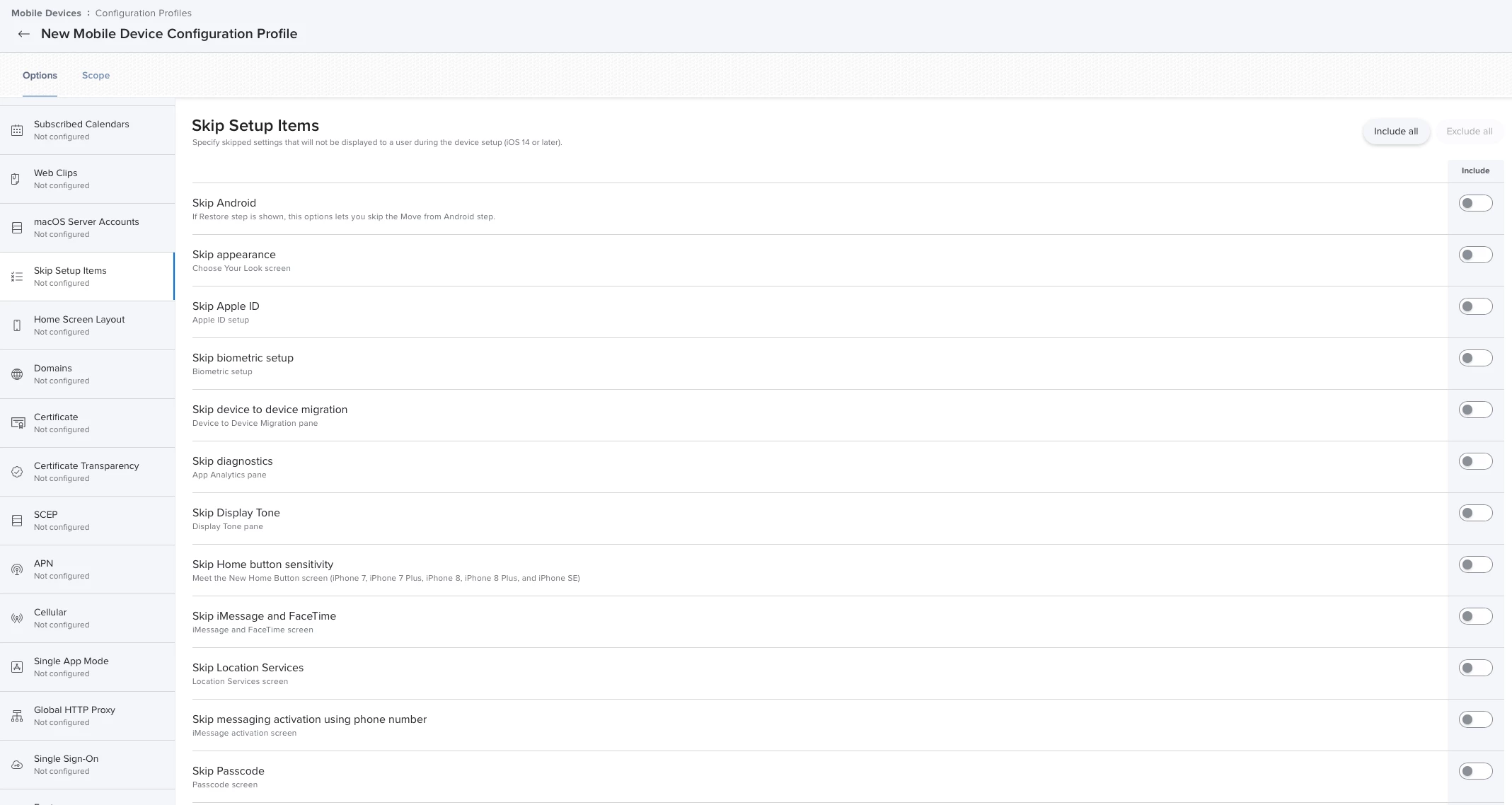 I am not sure to understand what the "Skip Setup Items" payload is, especially outside a prestage enrollment profile.
