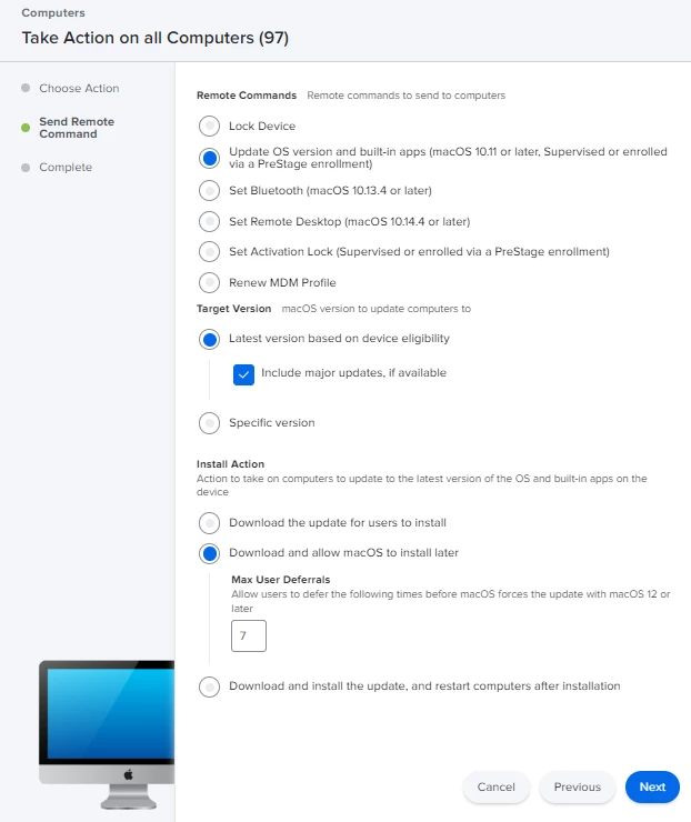 - You could write a launch agent/daemon to check the version of macOS on whatever interval and call a script you have on the device to bring up JAMF helper, and even open System Preferences/Settings to the correct pane if so desired.