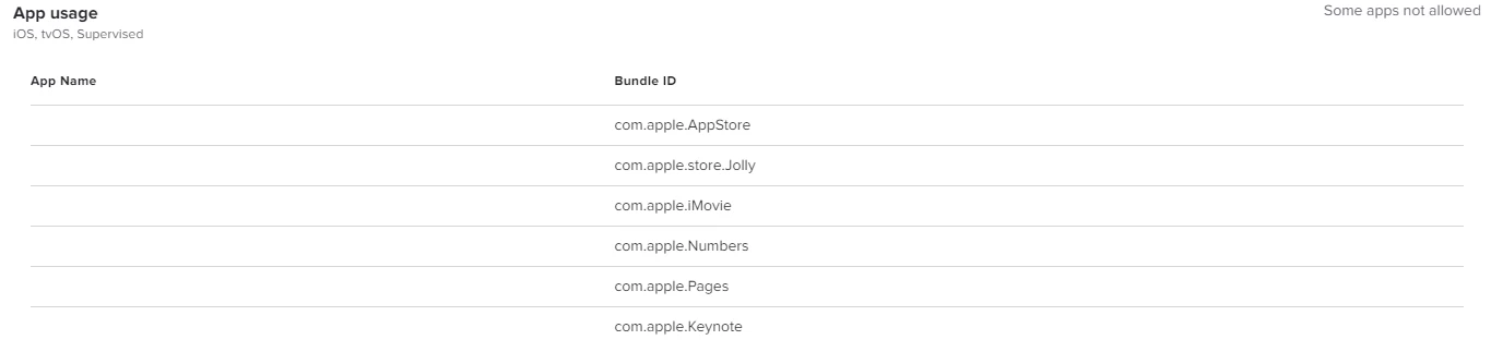 how I have the "Some Apps Not Allowed" set up in the Student Restrictions Configuration Profile