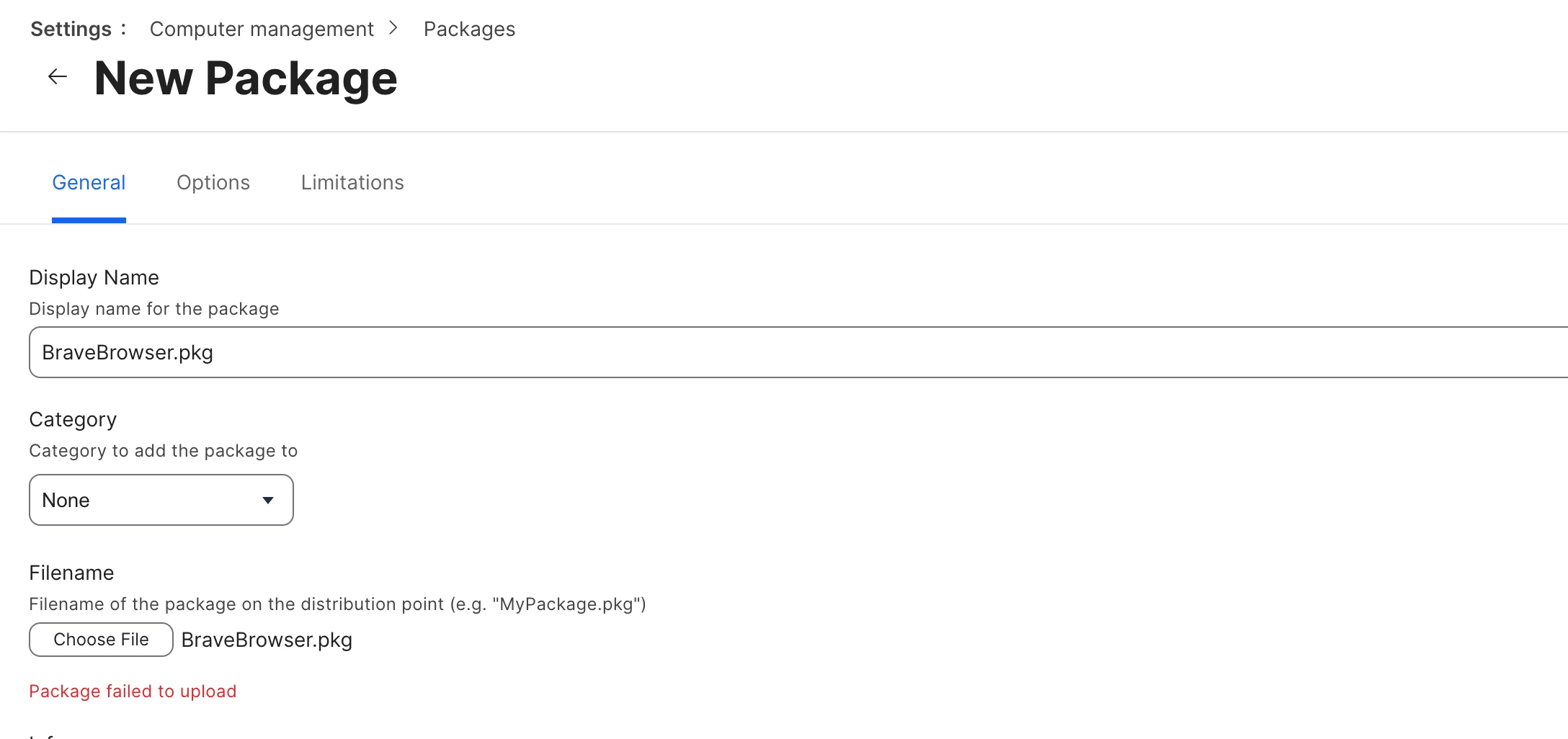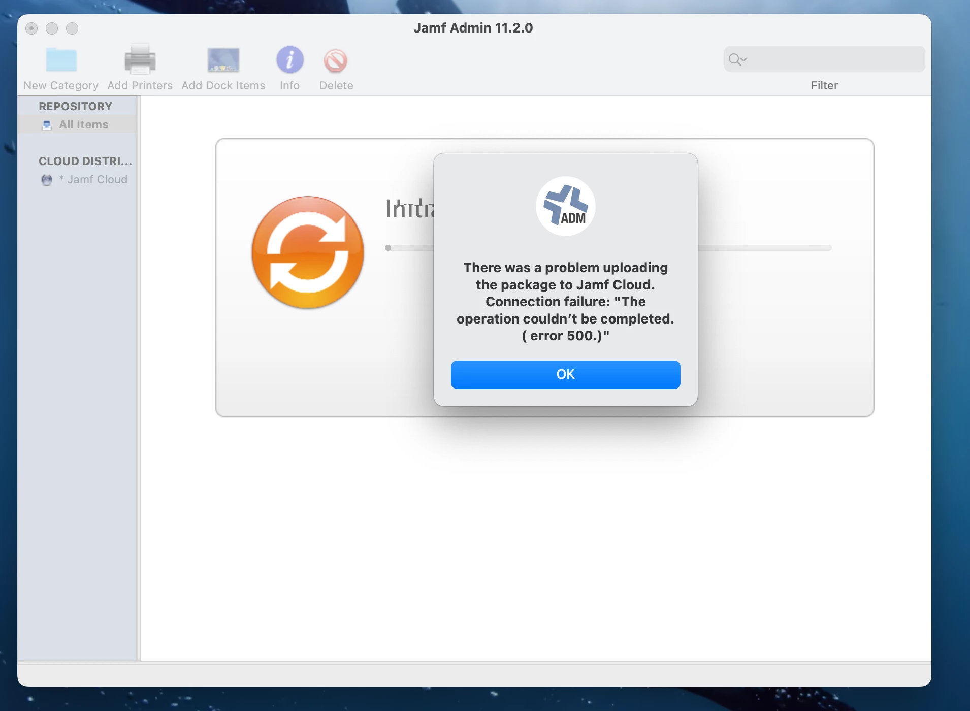 While uploading any PKG, I'm getting the message There was a problem uploading the package to Jamf Cloud.