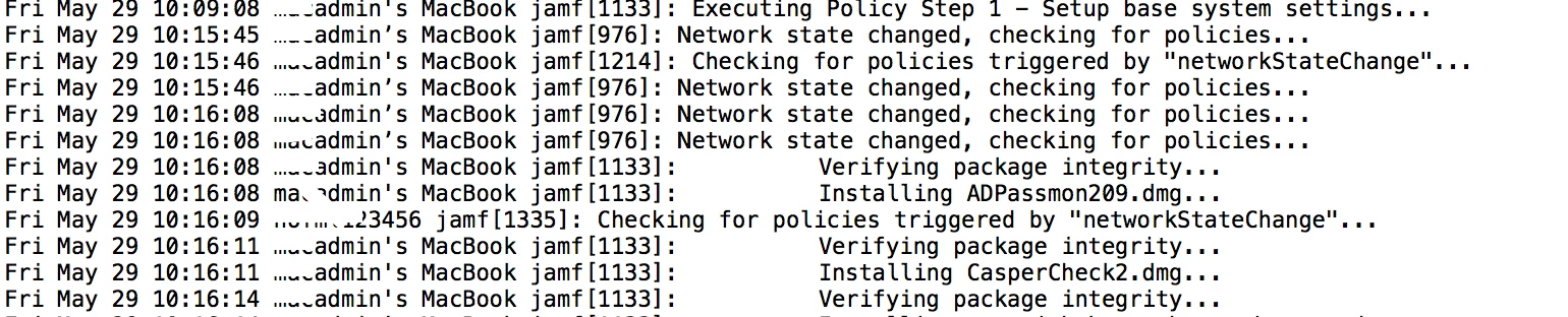 after a few steps you see the machine name change on the line checking for policies by "networkStateChange"