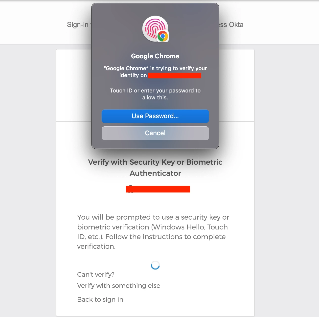 The Touch ID interface in Chrome for Okta MFA