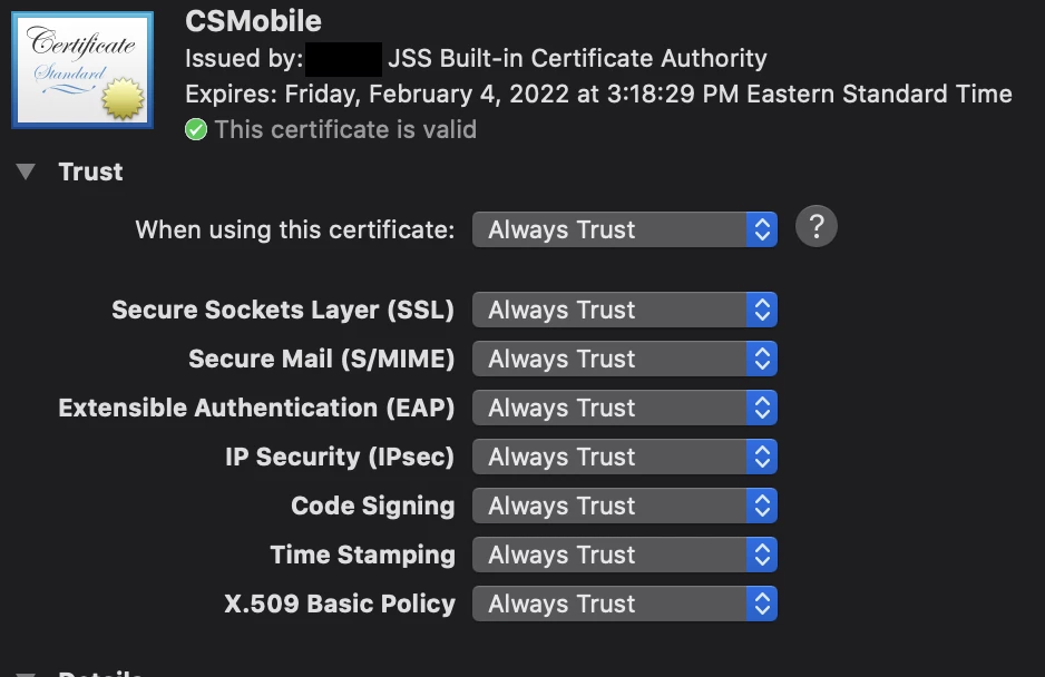 My suspicion is it sees a duplicate of the CSMobile cert and doesnt know which one to pick. Ive tried deleting everything and importing again but it always creates 2 entries when I check for a valid identity.