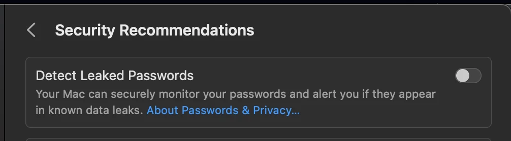 System Preferences > Passwords > Security Recommendations > Detect Leaked Passwords