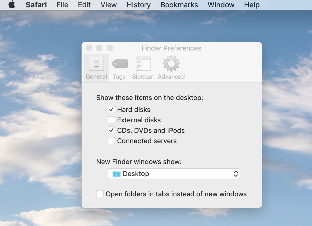 Im unable to turn on Finder preferences to show me External disks, when I click on it to enable it dosent accept it, I have tried with Configuration profile managing the finder prefs but still dosent respond