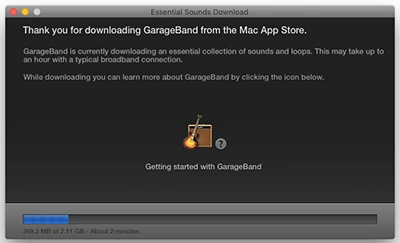 I end up with a .pkg installer of GarageBand and a .dmg of sounds and loops. This is what my .dmg file looks like!