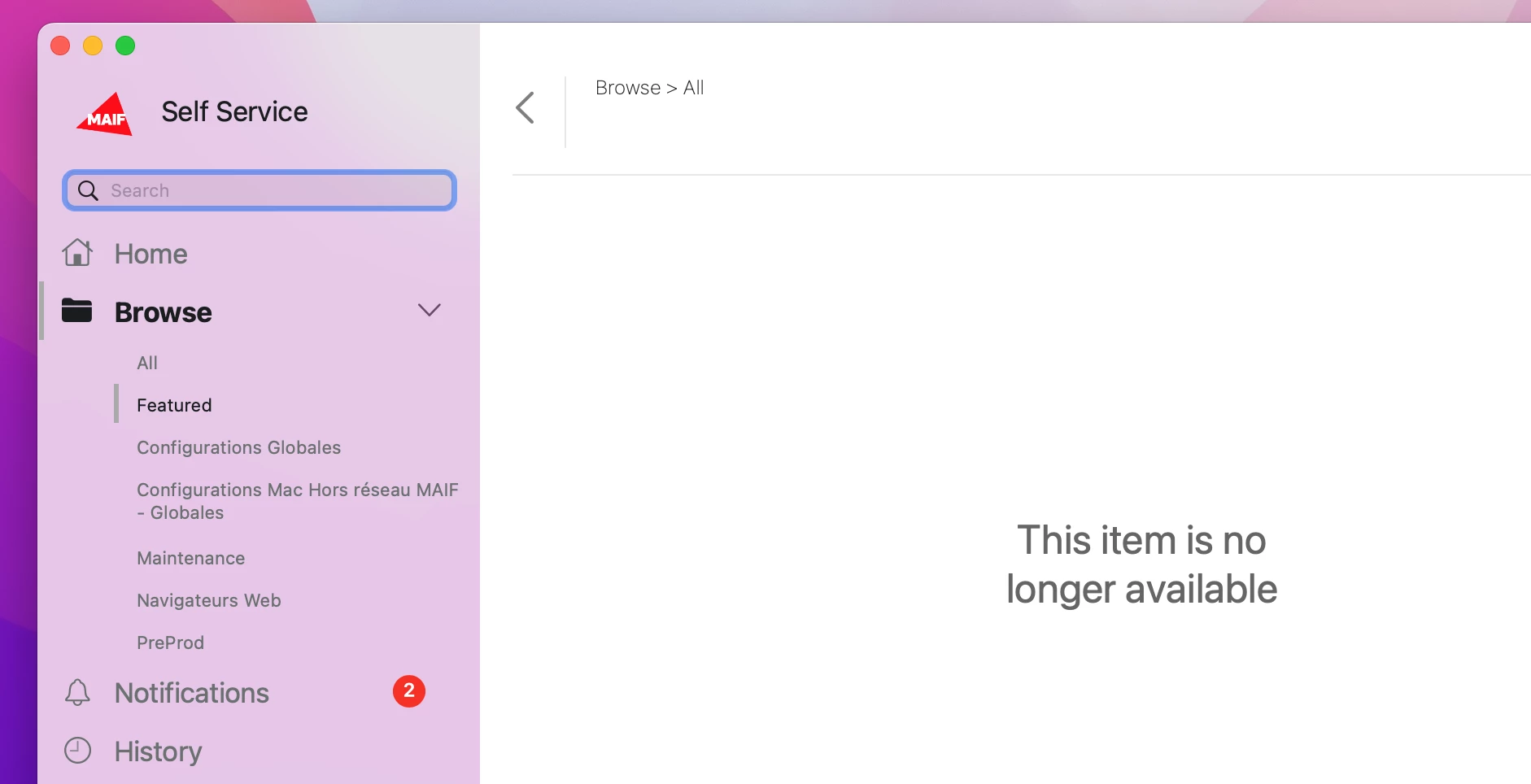 Policy is enabled in self-service. Install is not successful.