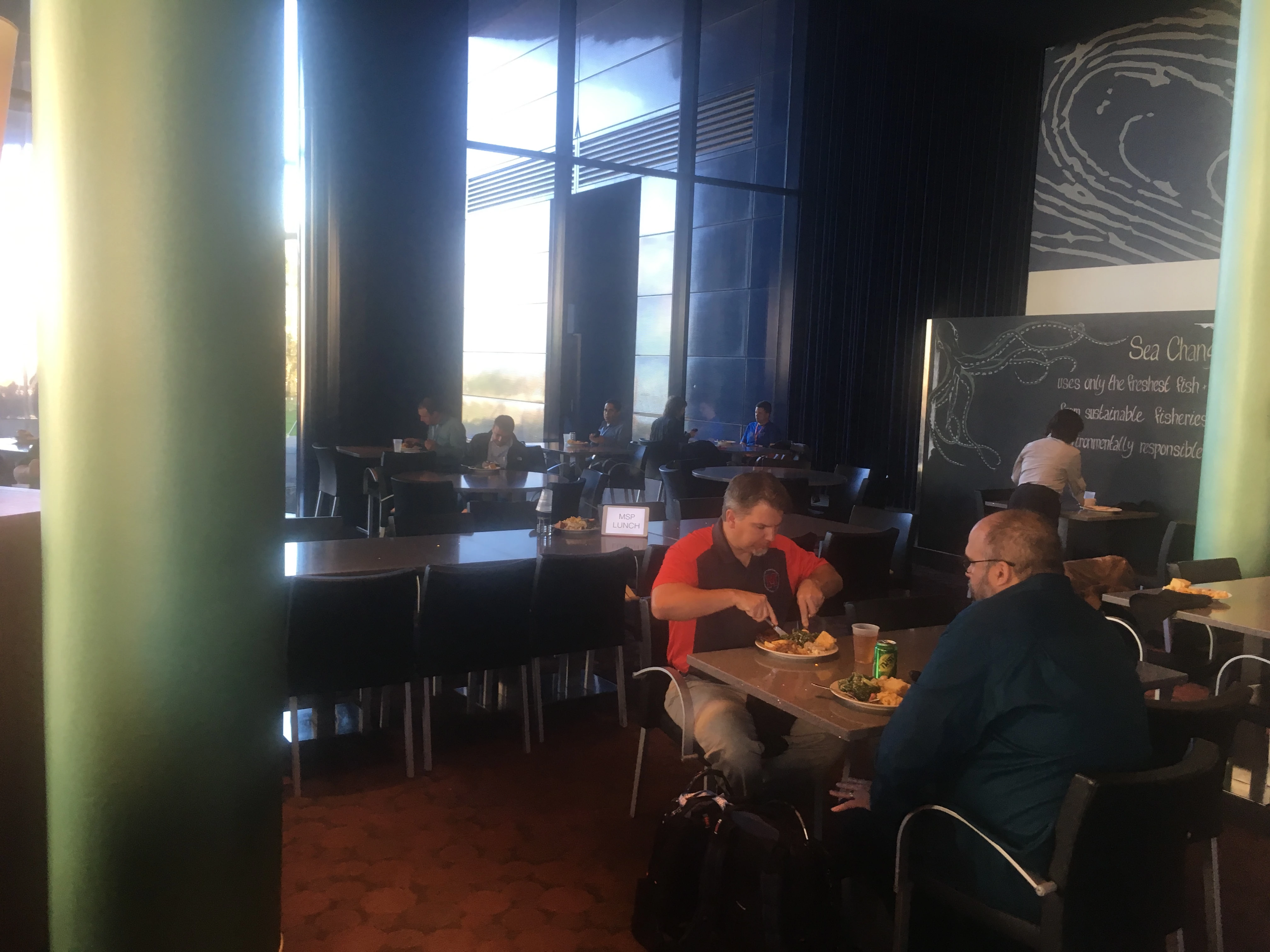 restaurant on the ground floor of the Guthrie. We'll have to find each other inside.
