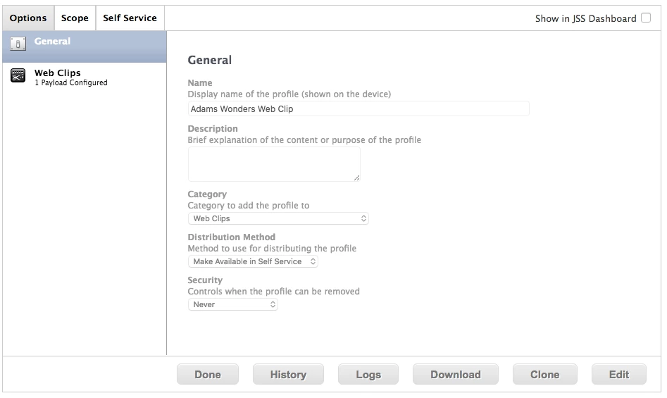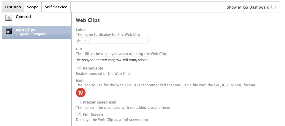 I've successfully installed the web clip through Self Service.