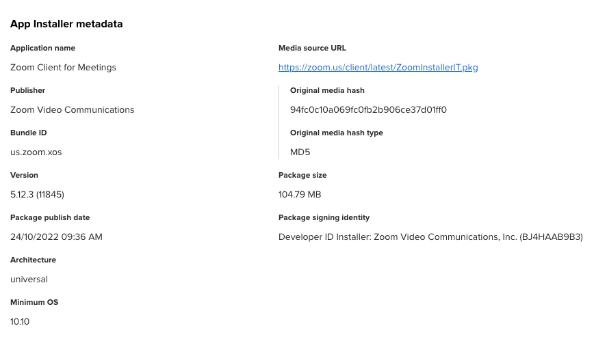 Is the zoom in the Jamf App Catalog the IT admin version? > Yes, you can click on the application title and it'll provide you additional details.