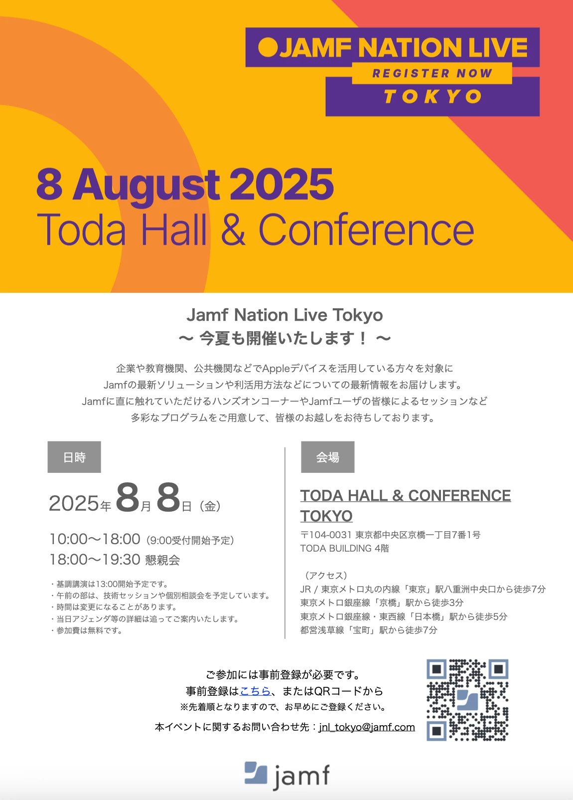 そんな中で更に熱いJamf Nation Liveを今年も開催する事になりました!🔥