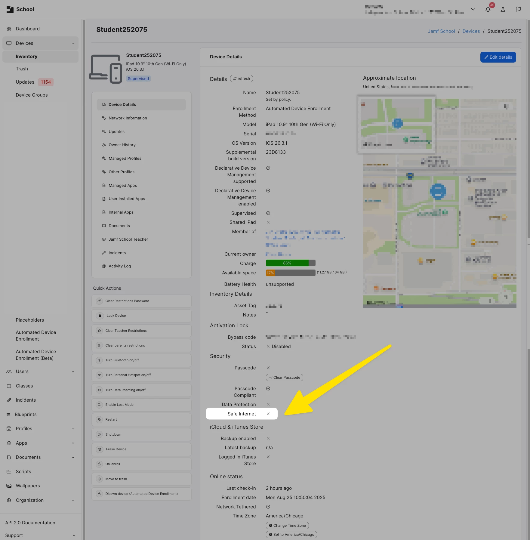 Getting around to trying to figure out this issue. We’ve been using Jamf Safe Internet for many months and it’s been working just fine. The iPads have the Trust App, the profile from Jamf Safe Internet, and the restrictions and blocks are working. Jamf Safe Internet shows over 3,000 devices are syncing.