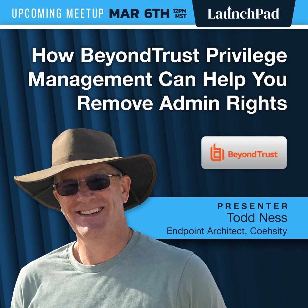 Todd Ness is presenting at this month's LaunchPad to show how to implement BeyondTrust privilege management in a way that balances security with flexibility. He'll cover giving elevated privileges to specific user groups and blocking unwanted applications.
