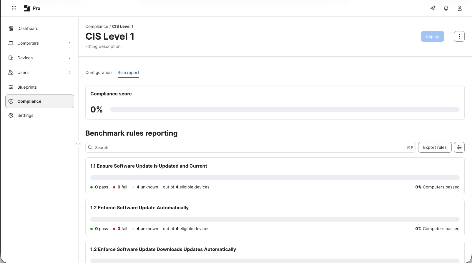 Using Compliance in Protect? Like the simple compliance percentage as an overall indicator? It is NOW in Jamf Pro as well! Each benchmark shows a compliance score that tells you the compliance status over the assigned computers to know how you are doing.