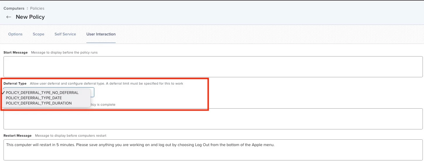 I use the JAMF deferral for updates in my environment and come in every week and push out the end deferral so it doesnt force all our clients to update during business hours...