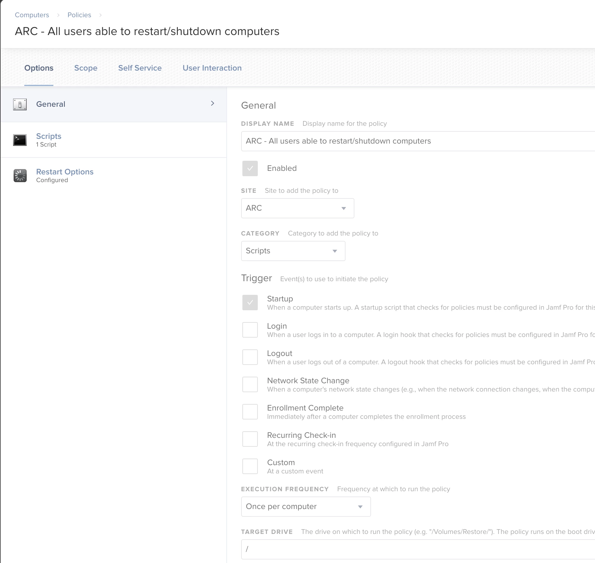 Policy fails. If I send the exact same command out via Apple Remote Desktop, commands are successful.