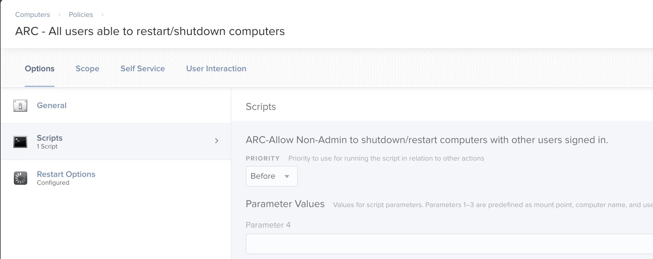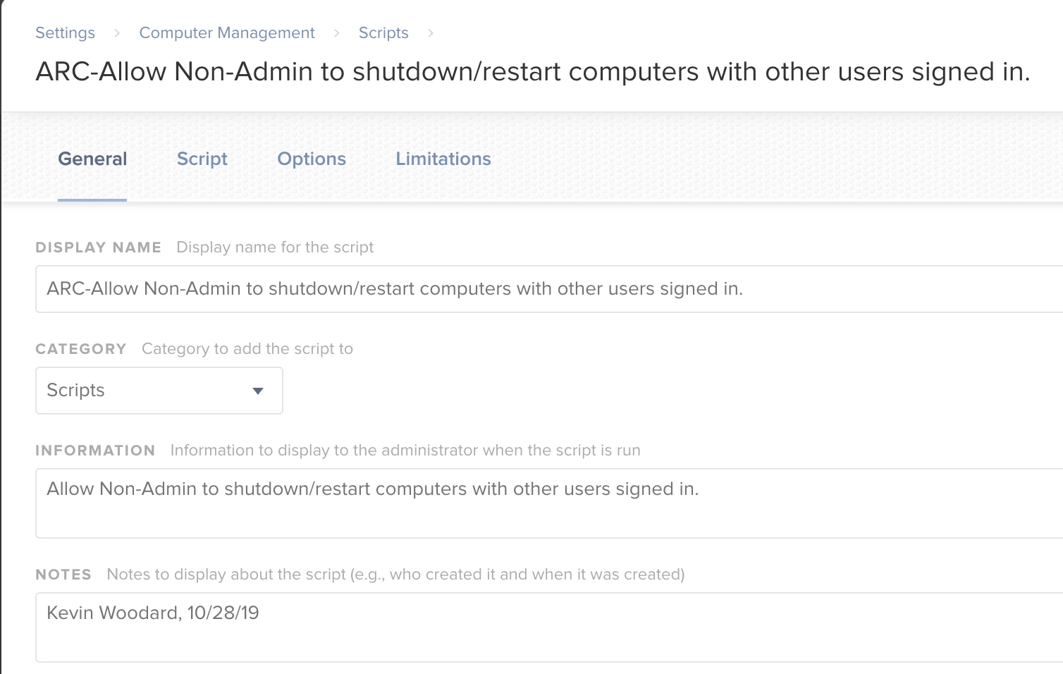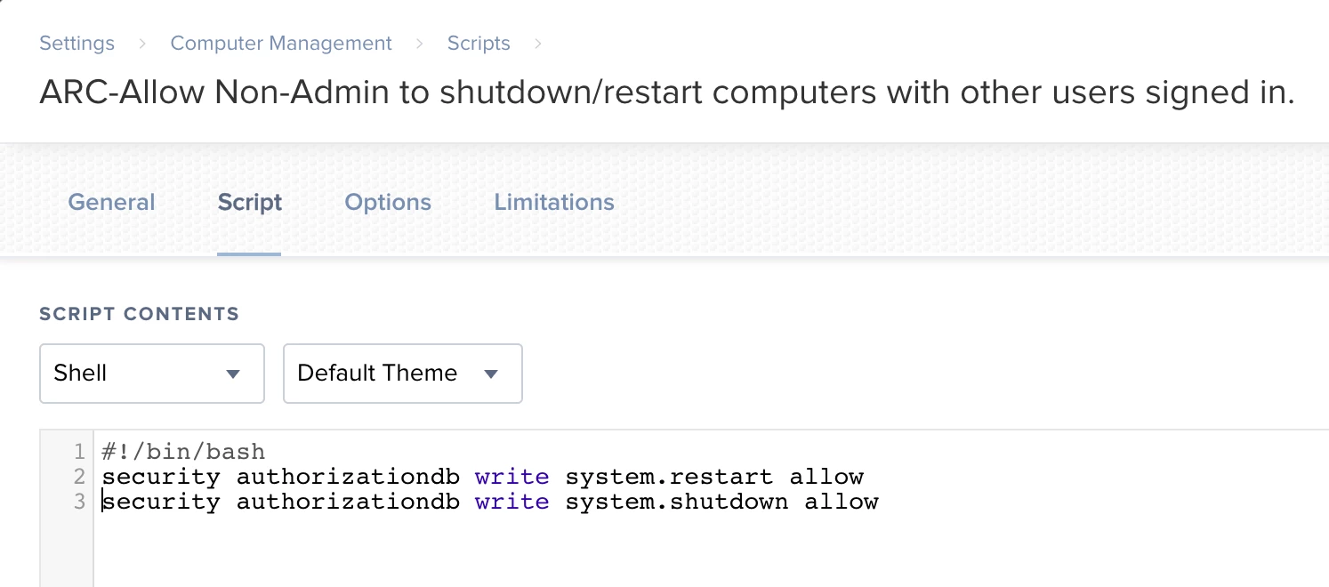 The script allows non-admin users to shutdown/restart the computer without admin credentials.